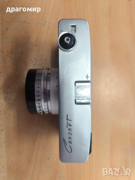 продавам Canon Canonet, всичко му работи и светломера,но има забележка паднало му е от долу където се захваща за калъфа или статив,налично е който разбира ще може да си го сложи,на снимките е показано, имам още много други фотоапарати, камери, обективи, чанти, светкавици, батерии, зарядни устройства, касети, филтри, ремъци, ленти, при закупуване на повече неща отстъпка