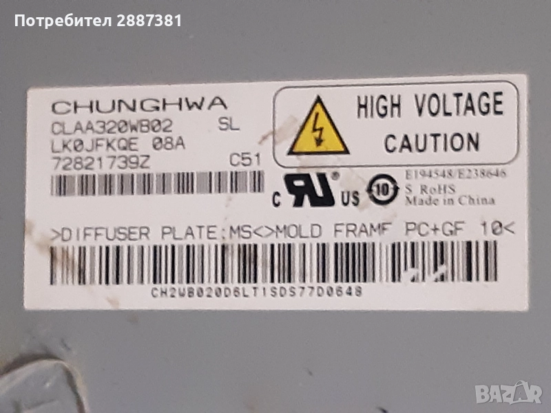 Samsung LE32S62BX-XEC на части BN41-00811B BN44-00155A TPT320WB02C, снимка 1 - Части и Платки - 52142662 Samsung LE32S62BX-XEC на части BN41-00811B BN44-00155A TPT320WB02C, снимка 2 - Части и Платки - 52142662 Samsung LE32S62BX-XEC на части BN41-00811B BN44-00155A TPT320WB02C, снимка 3 - Части и Платки - 52142662 Samsung LE32S62BX-XEC на части BN41-00811B BN44-00155A TPT320WB02C, снимка 4 - Части и Платки - 52142662 Samsung LE32S62BX-XEC на части BN41-00811B BN44-00155A TPT320WB02C, снимка 5 - Части и Платки - 52142662 Samsung LE32S62BX-XEC на части BN41-00811B BN44-00155A TPT320WB02C, снимка 6 - Части и Платки - 52142662 Samsung LE32S62BX-XEC на части BN41-00811B BN44-00155A TPT320WB02C, снимка 7 - Части и Платки - 52142662 Samsung LE32S62BX-XEC на части BN41-00811B BN44-00155A TPT320WB02C, снимка 8 - Части и Платки - 52142662 Samsung LE32S62BX-XEC на части BN41-00811B BN44-00155A TPT320WB02C, снимка 9 - Части и Платки - 52142662 Samsung LE32S62BX-XEC на части BN41-00811B BN44-00155A TPT320WB02C, снимка 10 - Части и Платки - 52142662 Samsung LE32S62BX-XEC на части BN41-00811B BN44-00155A TPT320WB02C, снимка 11 - Части и Платки - 52142662 Samsung LE32S62BX-XEC на части BN41-00811B BN44-00155A TPT320WB02C, снимка 12 - Части и Платки - 52142662 Samsung LE32S62BX-XEC на части BN41-00811B BN44-00155A TPT320WB02C, снимка 13 - Части и Платки - 52142662 1/13