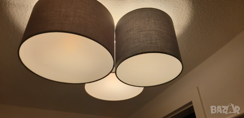 Материал на абажура: текстил (кафяв, бял, сив)