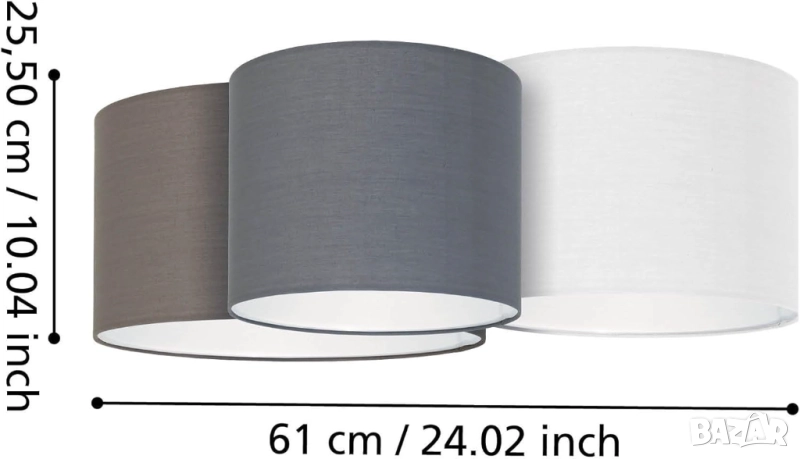 Eglo Pastore 97479 е стилна таванна лампа с три текстилни абажура в различни цветове – кафяв, бял и сив. Със своите модерни линии и мека светлина, тя е подходяща за хол, спалня, коридор или трапезария.