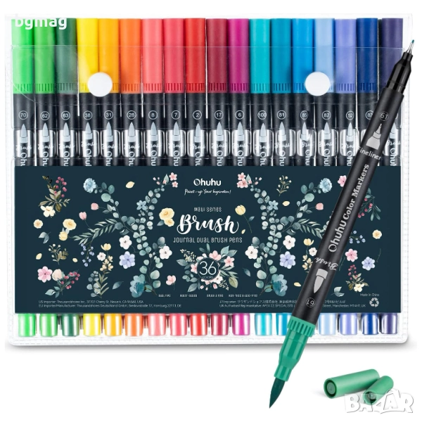 Ohuhu Maui Series маркери с два писеца тип четка и тънък писец, Ohuhu 36 цвята, с мастило на водна основа, смесваеми цветове, четка и тънкописец с фин връх, идеални за рисуване, калиграфия, рисуване на манга, планиране, дневници, изобразително изкуство, надписи с четка и много други творчески дейности свързани с рисуването.