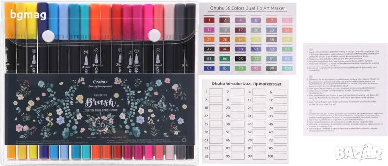 Ohuhu Maui Series 36 цвята маркери с два писеца-четка и тънък