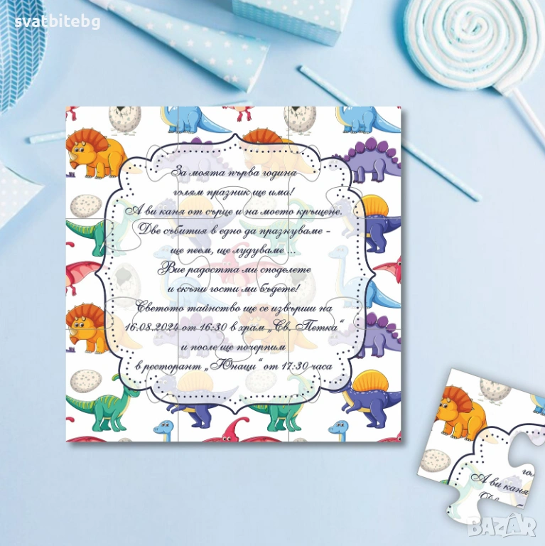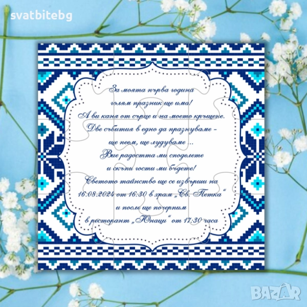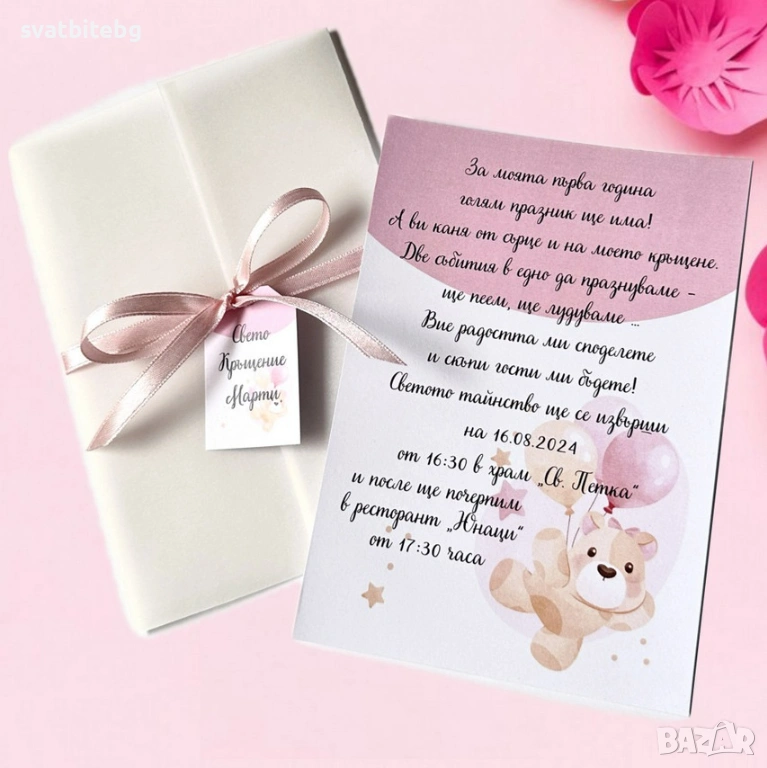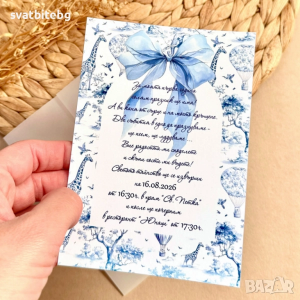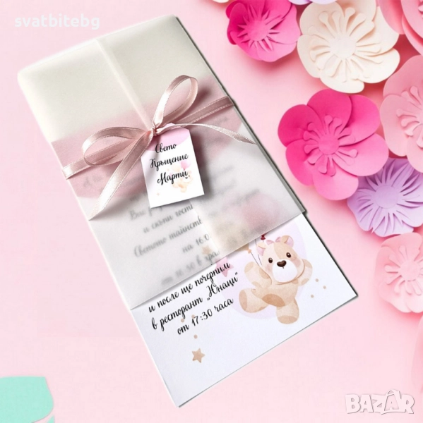 Тези покани са идеални както за кръщене, така и за първи рожден ден, юбилей или тематично тържество, оставяйки траен спомен в сърцата на вашите близки.