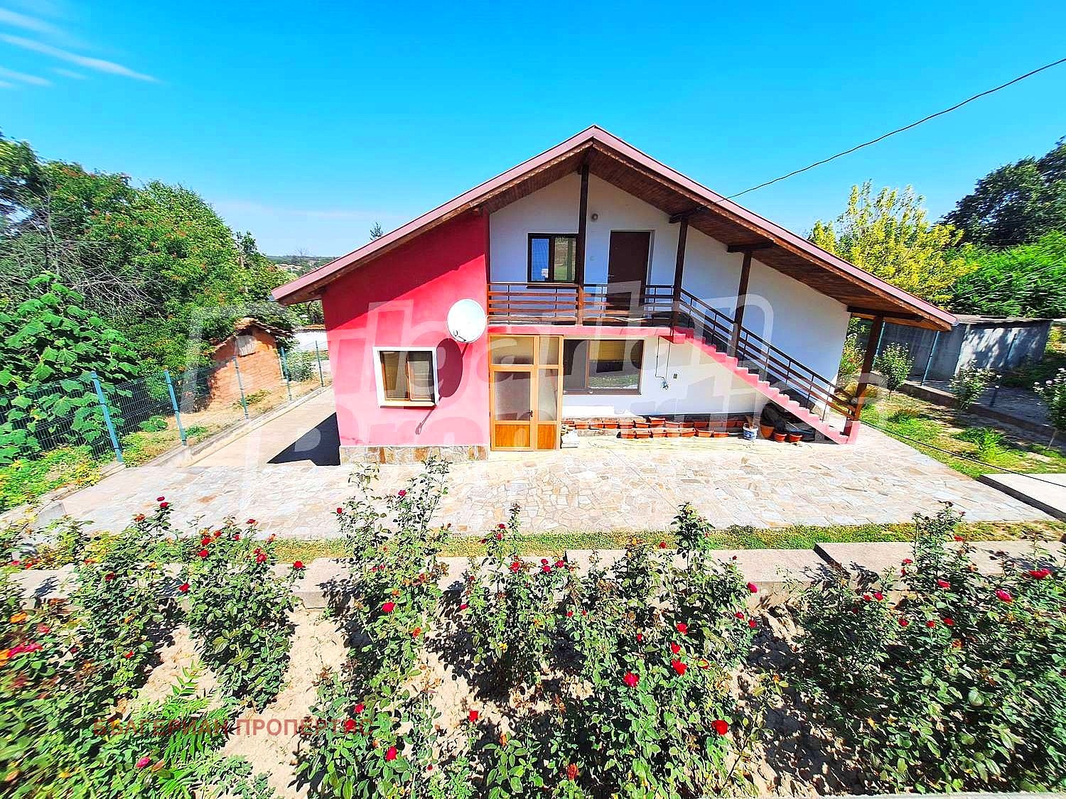 Парцелът е с площ от 820 кв.м., а къщата е двуетажна, напълно обзаведена и поддържана в отлично състояние. На първия етаж ще откриете просторна всекидневна, кухня, две спални и санитарен възел функционално разпределение, което съчетава комфорт и практичност. По външни стълби се стига до втория етаж, където са разположени голяма стая, баня с тоалетна и две по-малки помещения със скосен таван идеални за спални, кабинет или детски кът.