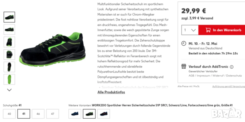 Висококачествен продукт на известната немска марка - специалист в производството на модни, спортни, туристически и работни обувки. За допълнителна информация посетете www.