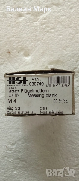 Гайка крилчата М4 – месинг, DIN 315 (внос от Германия)100бр. → Обява 52144115