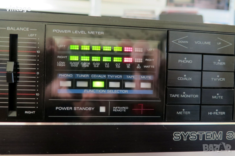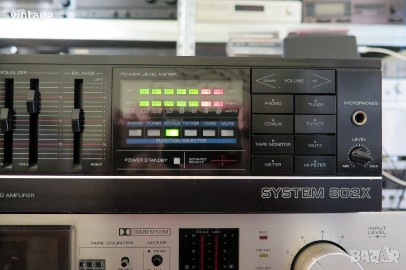 Стерео усилвател, отличен технически, много добър външен вид. Светодиоден индикатор за изходните нива, регулируем вход за микрофон, корекции: 5 бандов еквалайзер. изходна мощност 2х32 вата/ 8 ома. Габаритни размери: 345х105х280 мм. Дистанционно управление не е налично! Приложените снимки и видео са реални!