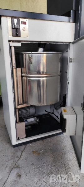 Прахосмукачката е реновирана .Подменени боя ,електроника,монетник, брави,маркучи,накрайници и други. Работи с 50ст,1лв.и 2лева.Може и в Евро.Можежда се регулират времената.Има опция СТОП.Маркуча се прибира в колоната .Алуминиев корпус.Подготвена за фискализация.Гаранция 12 месеца.