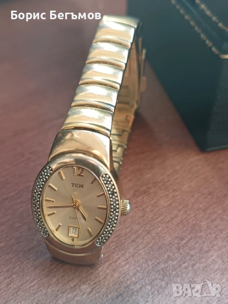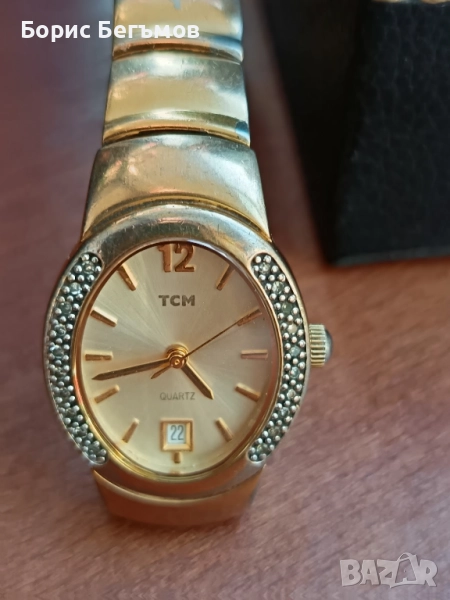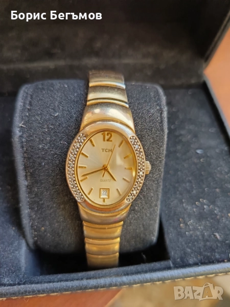 Продава запазен,точно дамски кварцов часовник TCM в златист цвят с дисплей за дата и безел, украсен с кристали.Дата на 6 часа.Пращаме със спиди или еконт с преглед и тест след превод на капаро за куриерската услуга, поради зачестили некоректни потребители или най-добре- лично предаване.