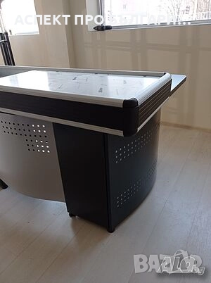 Универсално касово място, позволяващо окомплектовка на модулен принцип при 4 различни варианта на работен и операторски плот (ляво/дясно, вход/изход).