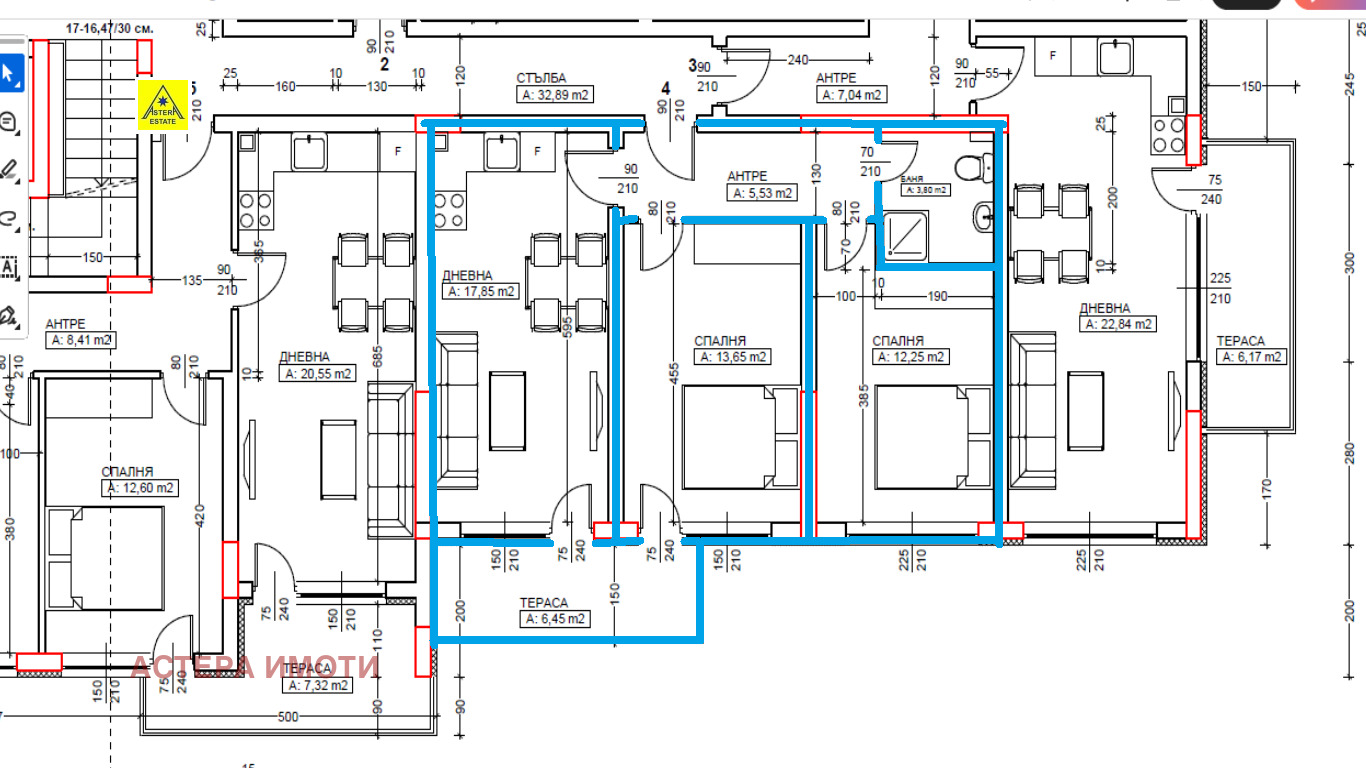Включване в нов проект!!! Астера Имоти предлага Апартамент, 77,70 кв.м. (69,70 кв.м. чиста), с 2 спални, на 1-ви етаж, в новострояща се сграда, за продажба, в кв. Еленово на гр. Благоевград. Апартаментът се състои от: всекидневна с кухненски бокс, 2 спални помещения, антре, 1 баня с тоалетна и 1 тераса. Апартаментът се продава в полузавършен вид, в следното състояние: под на замазка; стени и таван гипсова шпакловка; входна врата; ПВЦ дограма 7; водопроводна и електрическа инсталации - до тапа и точка съответно. Изложение на апартамента: запад-югозапад. Сградата е в процес на строителство със срок на завършване на проекта до края на 2027г. Сградата ще разполага с: асансьор, домофон, открити паркоместа, приземни гаражни клетки, мазете и паркоместа в подземния етаж на сградата, за които се заплаща допълнително.