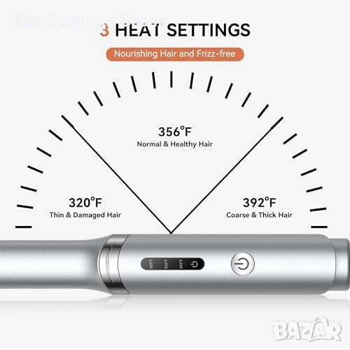 3 нива на температура: 160°C, 180°C и 200°C за всеки тип коса