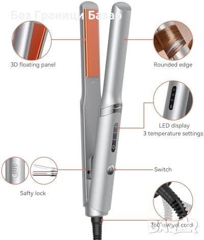 Подходяща за изправяне, къдрене и оформяне на бретон или къса коса