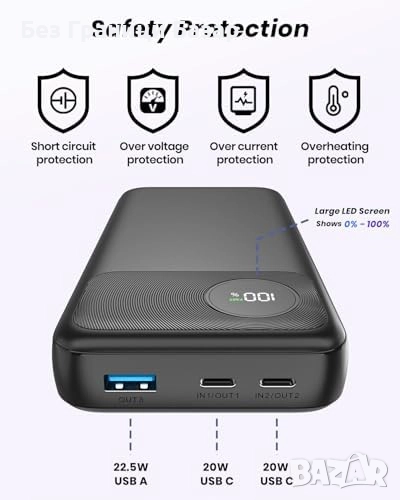 Външна батерия с капацитет 20000mAh и мощност 22.5W за бързо зареждане