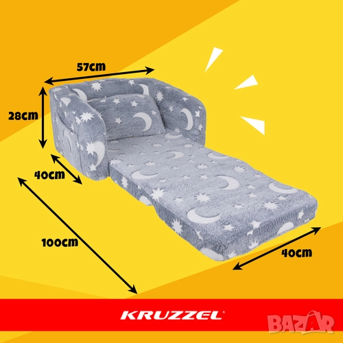 • • 1 × детски разтегателен фотьойл Kruzzel