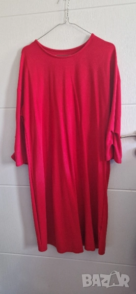 Дамска къса рокля с 3/4 ръкав тип туника размер: М/Л материя: памук цвят: червена подходяща за ежедн → Обява 52145919