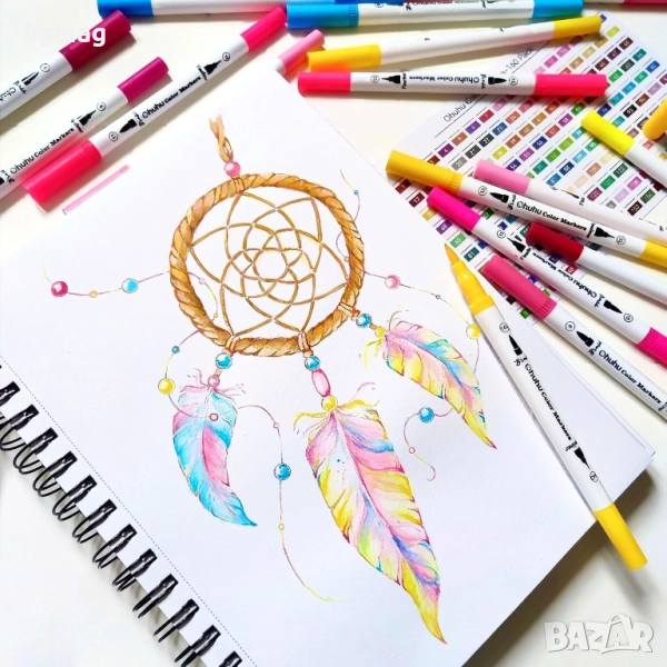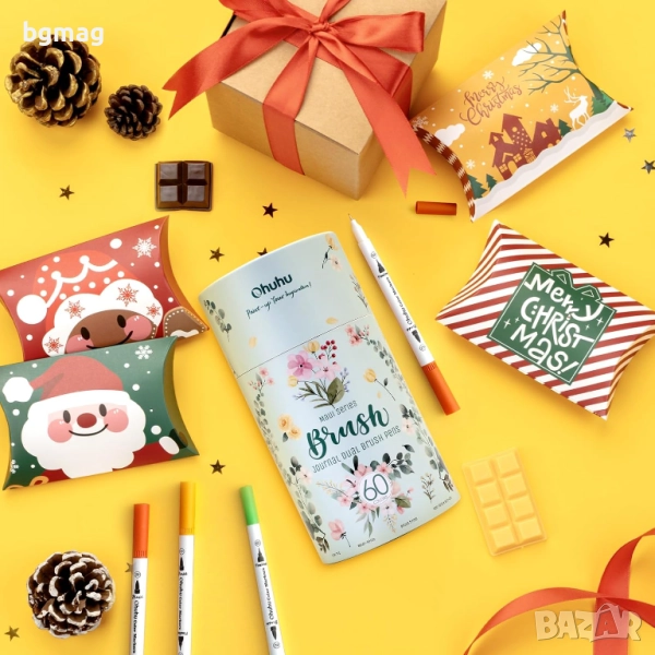 Ohuhu Maui Series маркери/флумастери с два писеца тип четка и тънък писец, Ohuhu 60 цвята с мастило на водна основа, смесваеми цветове, четка и тънкописец с фин връх, идеални за рисуване, за калиграфия, рисуване на манга, планиране, дневници, изобразително изкуство, надписи с четка и много други творчески дейности свързани с рисуването.