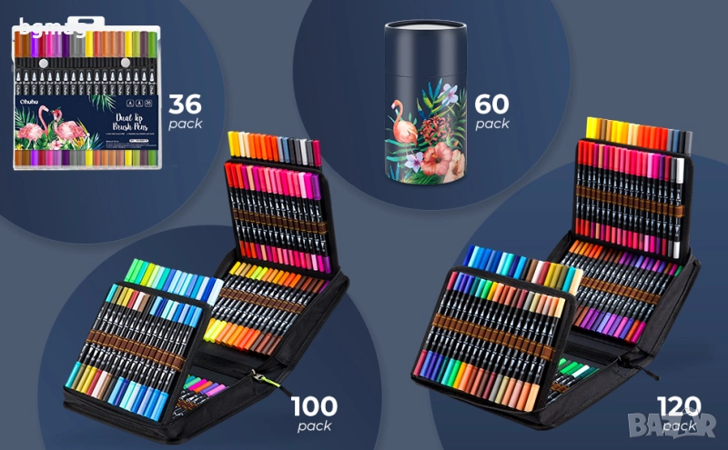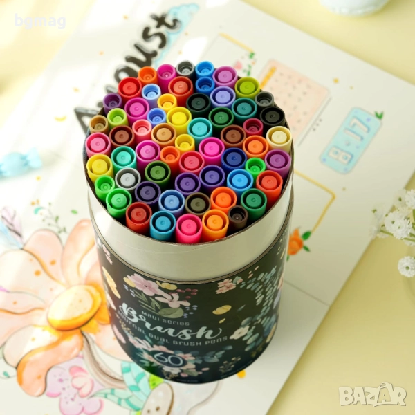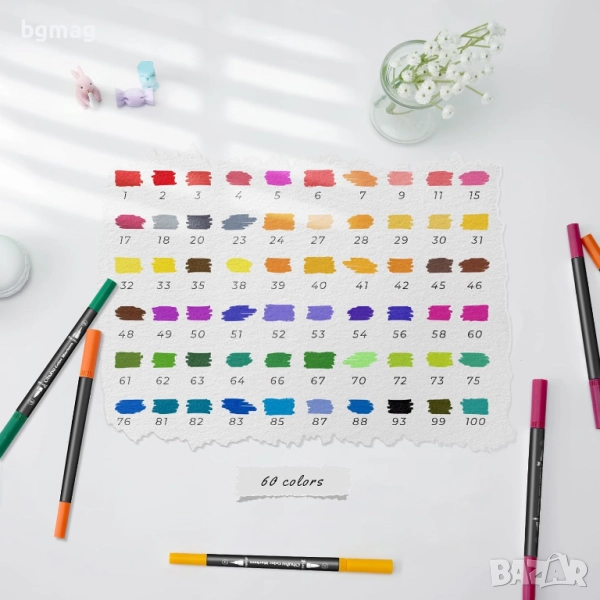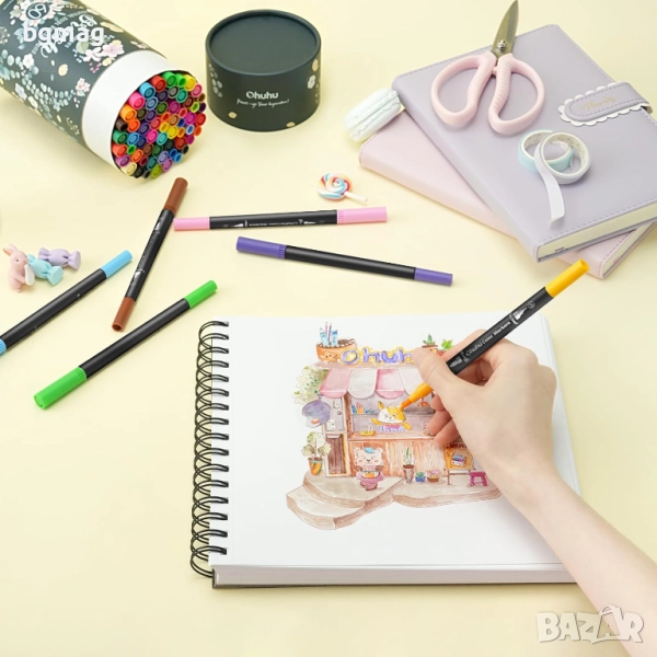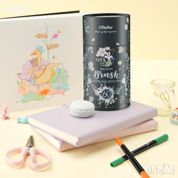 Ohuhu Maui Series маркери/флумастери с два писеца тип четка и тънък писец, Ohuhu 60 цвята с мастило на водна основа, смесваеми цветове, четка и тънкописец с фин връх, идеални за рисуване, за калиграфия, рисуване на манга, планиране, дневници, изобразително изкуство, надписи с четка и много други творчески дейности свързани с рисуването.