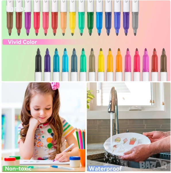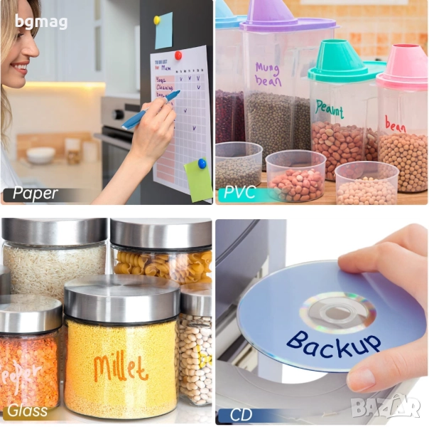 - Висококачествено, безопасно и незаличимо мастило: не е нужно да се притеснявате, че тези маркери на алкохолна основа ще попаднат върху кожата ви. Мастилото, включено в този комплект маркери, е безопасно, нетоксично и сертифицирано по MSDS и EN71. Освен това мастилото на тези перманентни маркери е водоустойчиво, устойчиво на слънце, издръжливо и бързосъхнещо.
