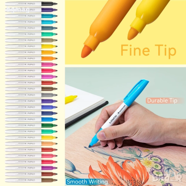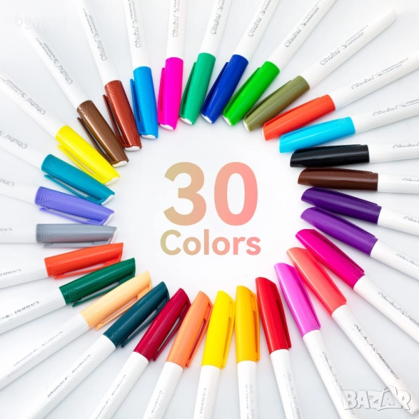 Ohuhu 30 Permanent Markers комплект перманентни маркери с тънък писец-Fine Tip, с мастило на алкохолна основа, 30 цвята, комплект за всеки, художници и творци, оцветяване, чертане, скициране върху хартия, плат, пластмаса, дърво, камък, метал, сткло, без токсични вечества, за възрастни и деца.