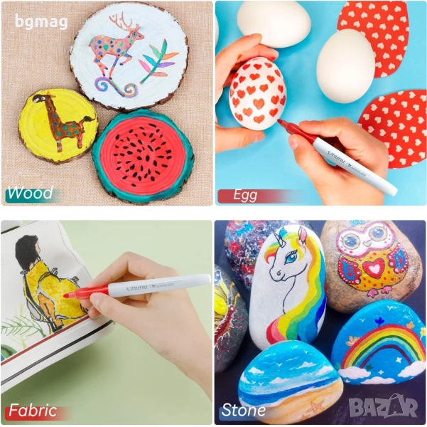 - РАБОТА ВЪРХУ ПОВЕЧЕ ПОВЪРХНОСТИ: За да се гарантира, че вашата креативност не е възпрепятствана от вида на повърхността, тези маркери с различни цветове се предлагат с издръжливи върхове, които могат да рисуват върху почти всяка повърхност, включително дърво, стъкло, пластмаса, дърво, метал, стена, прозорец, дърво, камък, скала, CD, скейтборд и други. Можете да разчитате на тези перманентни маркери с фин връх, за да ви осигурят гладко писане!