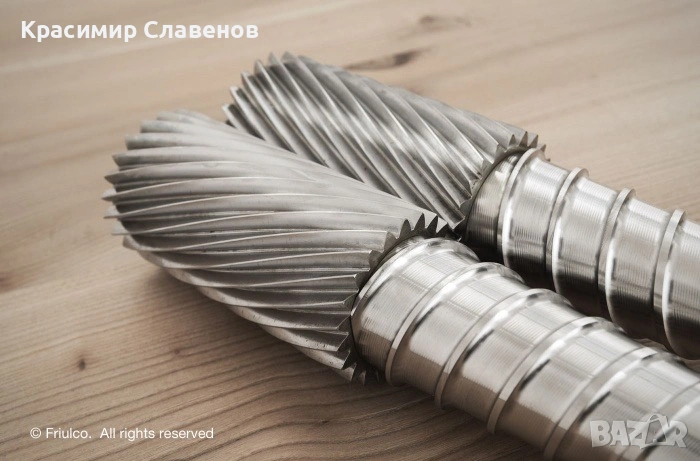 Argos е оборудван с двоен шнек от неръждаема стомана, 750W мотор, механика и филтри, изцяло изработени от неръждаема стомана.