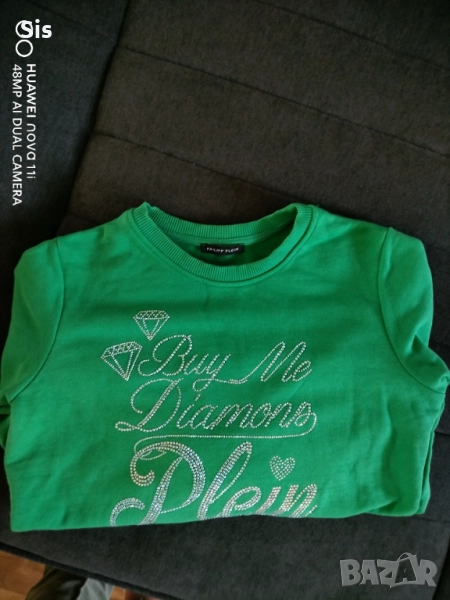 Дамска блуза/пуловер с камъчета и лого Philipp Plein, в зелен цвят.