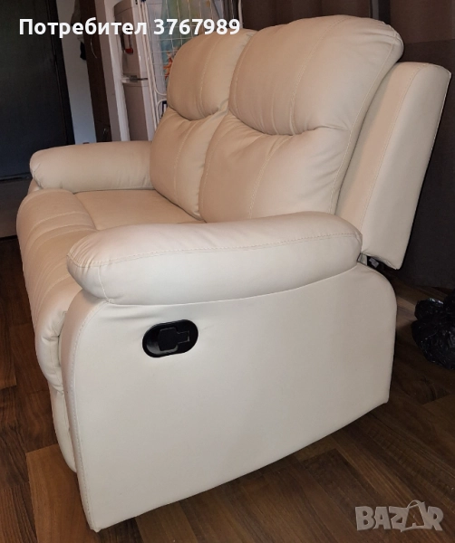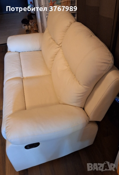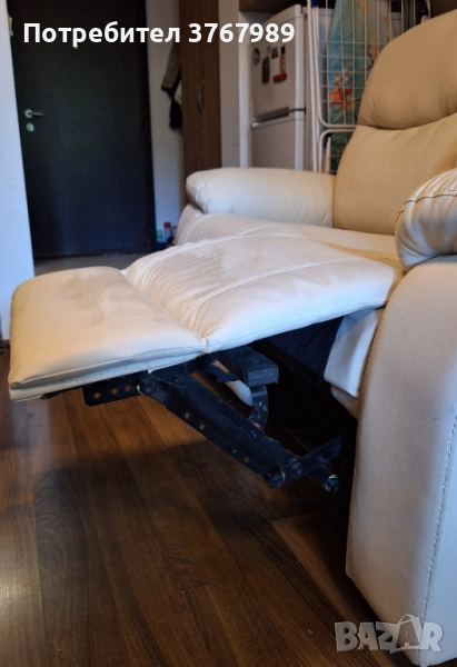 Продавам бежов разтегателен диван, естествена натурална кожа, 2-местен, ръчен механизъм, разгъва се, никога не е използван, може да се седи и лежи, като във кинофилмите, нов, естествена бежова кожа, чист, не ползван.