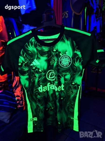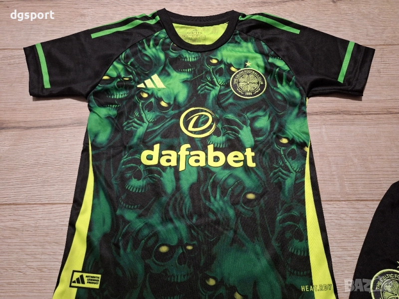 Детски флуоресцентен футболен екип на СЕЛТИК!Специално издание !Екипът е флуоресцентен под ултра виолетова светлина. Бродирани емблеми на клуба и марката.Име на футболист и номер принтирани директно върху плата.Налични размери 104/116,128,140,152,164 и 176.Доставка със Еконт или Спиди, опция преглед и тест.