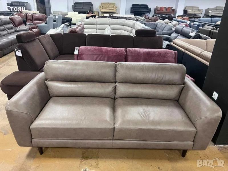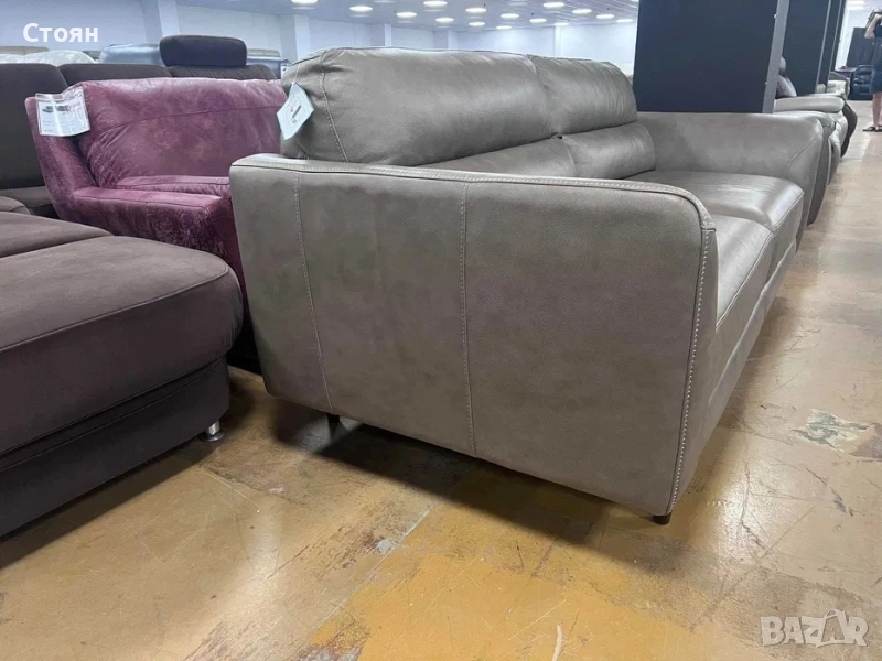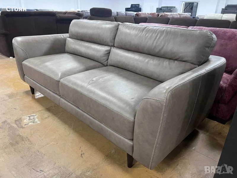 Бежов кожен диван тройка - 100 % естествена кожа.