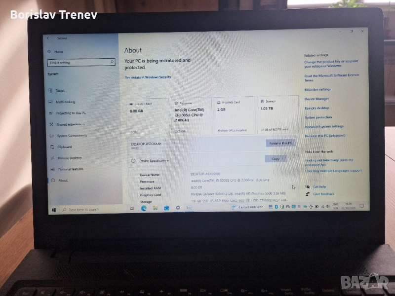 HDD: 1 TB (в caddy на мястото на DVD) – за съхранение на файлове