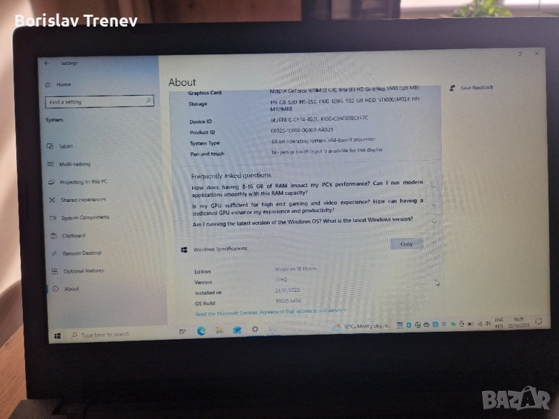 Операционна система: Windows 10 (чисто инсталиран, активиран, готов за ползване)