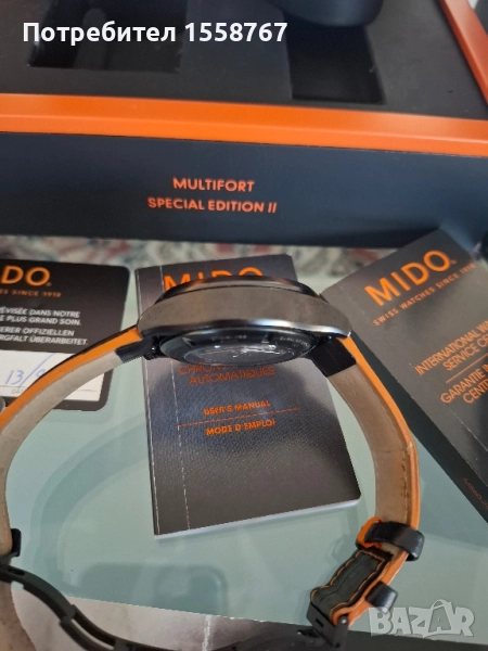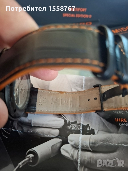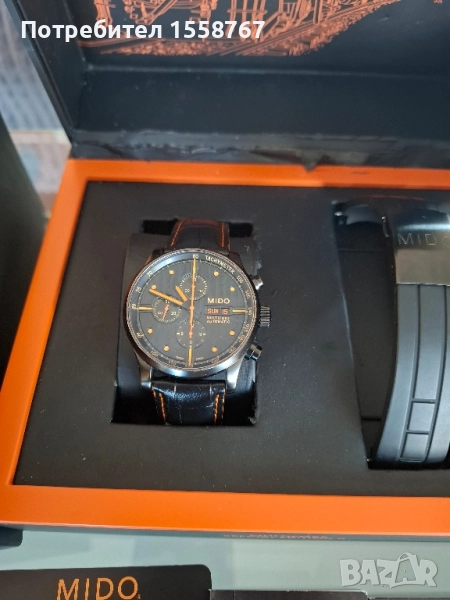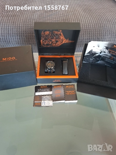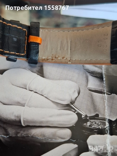 ЧАСОВНИК MIDO, ЧАСОВНИКЪТ Е НАПЪЛНО ФУНКЦИОНАЛЕН. Сафирано стъкло устойчиво надраскане ,коронка на винт.Часовникът е с много леки следи от употреба,които съм показал на снимките.Продава се с пълен комплект документи, с две каишки, едната каишка е чисто нова не е използван. Цената на нов часовник варира от 1800 евро до 2100. Възможен е и бартер за часовник от неговата ценова листа Благодаря ви