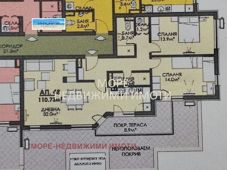 Море-недвижими имоти предлага 3 стаен в М. Рудник с площ 110.73 кв.м. на 6-ти етаж, състоящ се от дневна, 2 тераси, 2 спални и санитарен възел. Сградата с акт 15, с готови мазилка и замазка. Възможност да се закупи с ипотечен кредит. До м. декември 2025 год ще бъде с акт 16. Към имота може да бъде закупен и гараж.