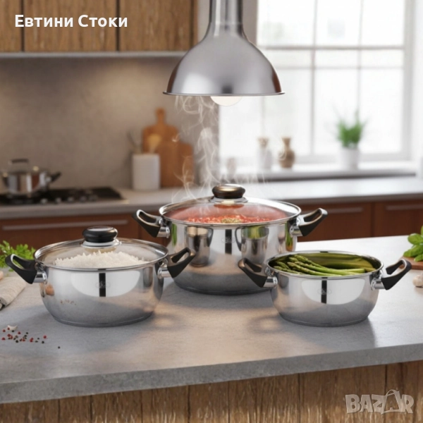 Комплект: 6 части (3 съда + 3 капака);