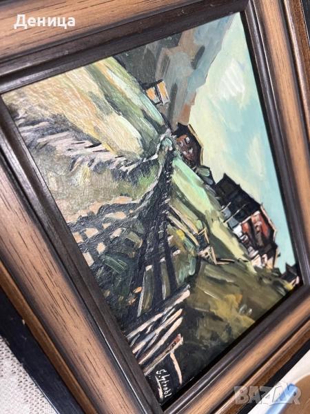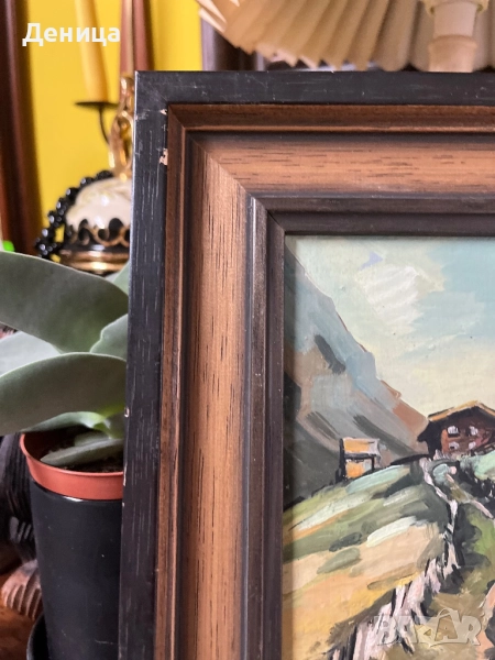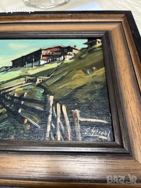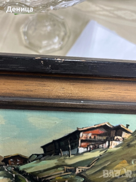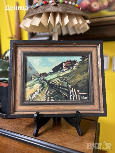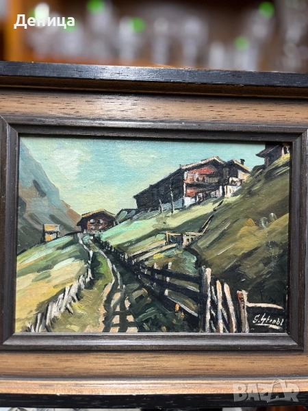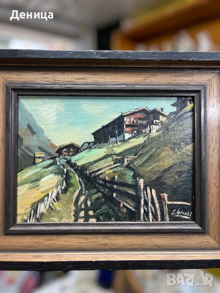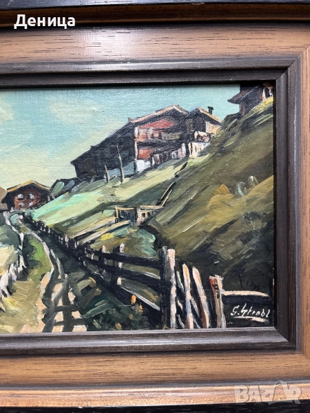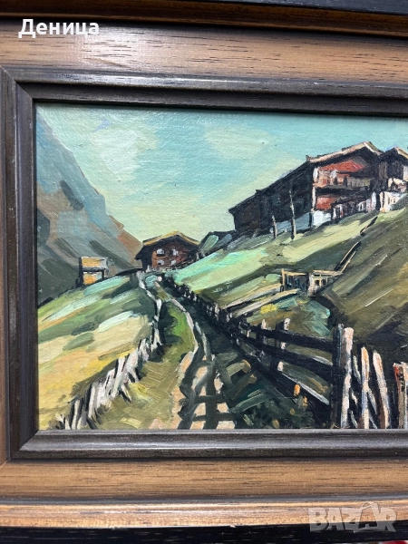 Маслена картина върху фазер Изобразяваща живописен планински пейзаж с къщи → Обява 52150317