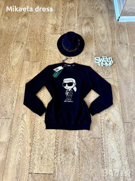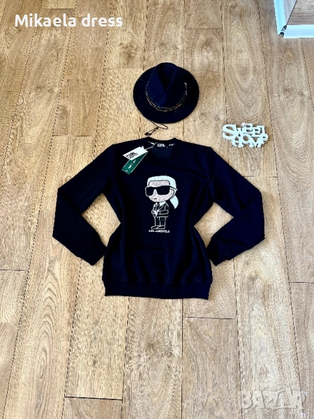 Страхотен ежедневен суичър от памук на Karl Lagerfeld в черен цвят. Нов продукт.Размери С М Л → Обява 52150519