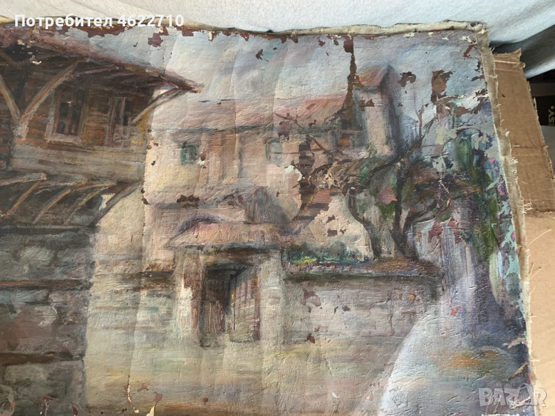 картината е за реставрация масло на платно има подпис неразчетен българска е размери 90см на 65см само платно е разгледайте снимките