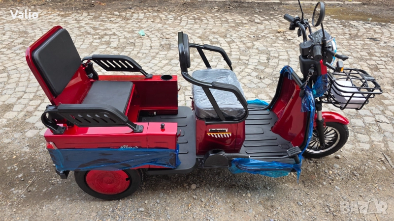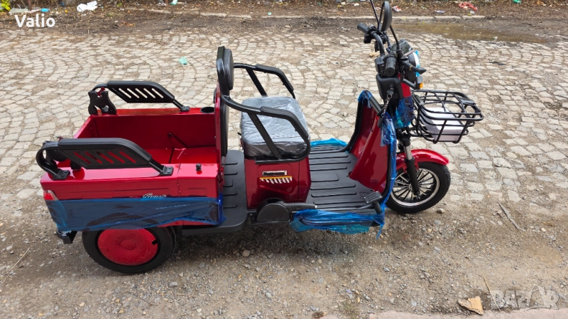 Eлектрическа триколка CARGO – LUX- .Моделът е изключително атрактивен и подходящ за разходка на един или двама пътници.Задната седалка с едно движение се повдига и задната част се превръща в място за товар.Страничната част на задното отделение е със врата,което допълнително допринася за удобното пренасяне на товари.Последен модел на такъв тип триколки – нищо общо с предлаганите подобни на пазара.Изключително функционални, както за града, така и за по-малките населени места.
