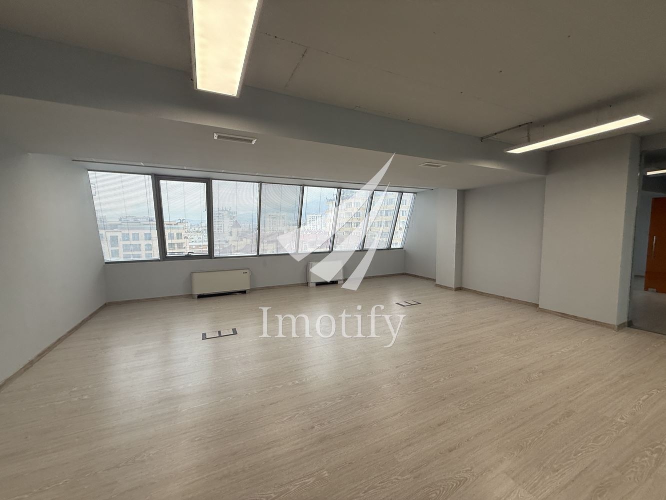 Офисът е напълно реновиран и готов за нанасяне с нови настилки, освежени стени и обновено окабеляване.