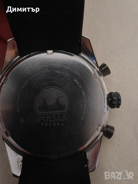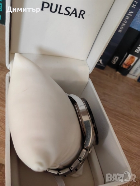 Предлага се с нова Силиконовата каишка и оргинална верижка с обща обиколка на китката до 19 см.Оргинална кутия на Pulsar.