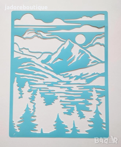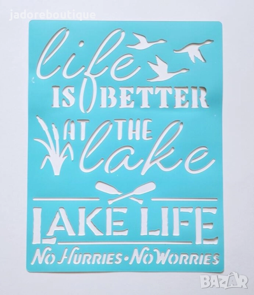 Lake life съдържа 10 броя - 2 броя пластмасови шаблони, всеки с размер 17.9х22.9 см, и 1 лист с 8 броя самозалепващи шаблони.