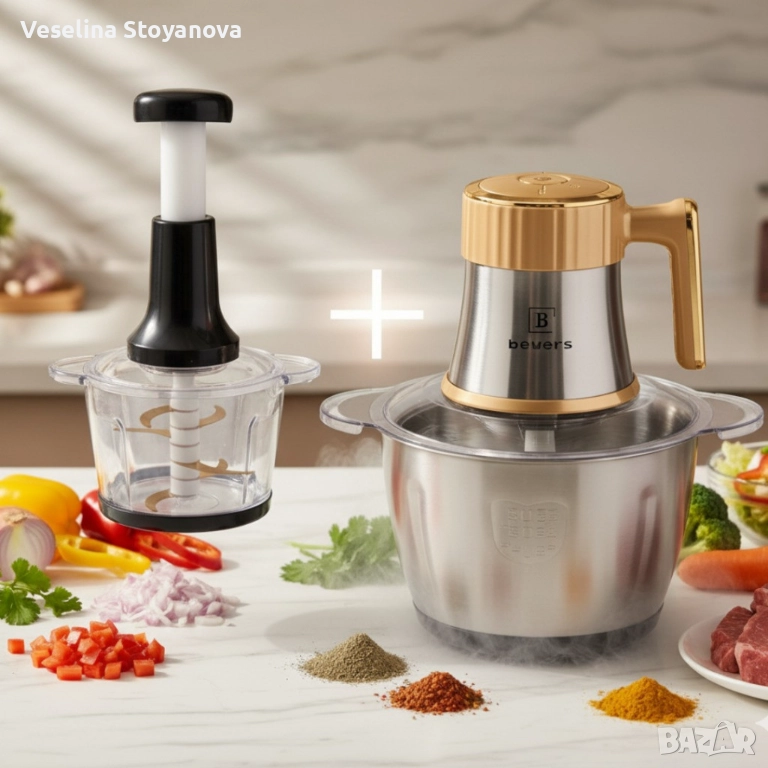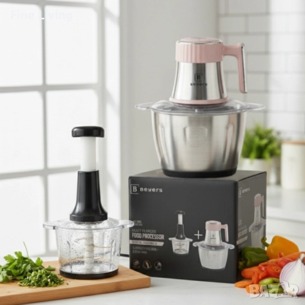 Многофункционален електрически кухненски чопър Beyers BH-2880 + Ръчен чопър с 3L стъклена купа → Обява 52151631
