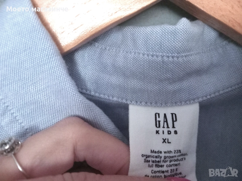Много приятна риза GAP Kids в класически светлосин цвят. Стои чудесно както с дънки, така и с по-официален панталон – идеална за училище, празник или по-специален ден. Материята е мека, памучна, с лек еластан за комфорт. Носена 2-3 пъти, без забележки – изглежда