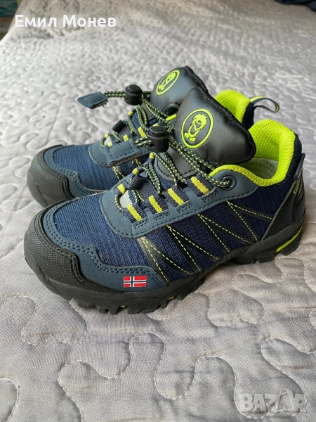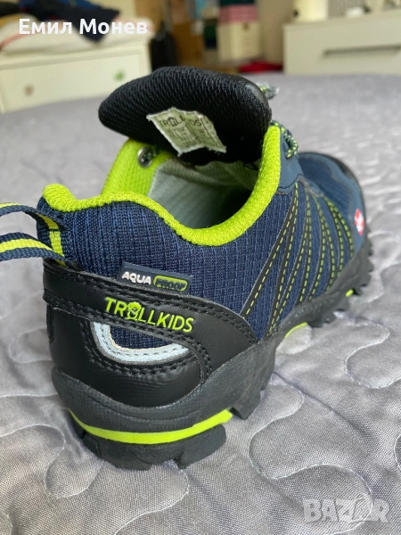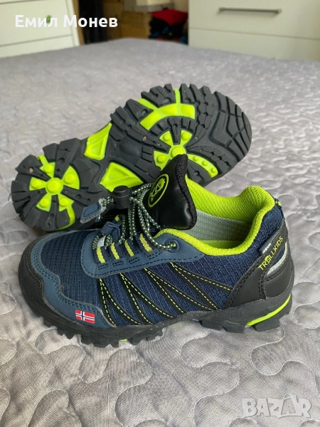Детски зимни обувки полуботи Trillkids. Цвят: тъмно синьо и зелено. Номер 28. Стелка 18,5 см. Цена 20 лв. Състояние: отлично, като нови. Произведени са от качествени материали и текстил с AQUA PROFF мембрана, което ще предпази от навлизане на студен въздух и влага във вътрешността на обувката. Подметката гарантира за максимална здравина, издръжливост на износване и перфектно сцепление. Затваряне с ластични връзки и събирач. Комфорт, уют и термална защита за краката през студените дни.