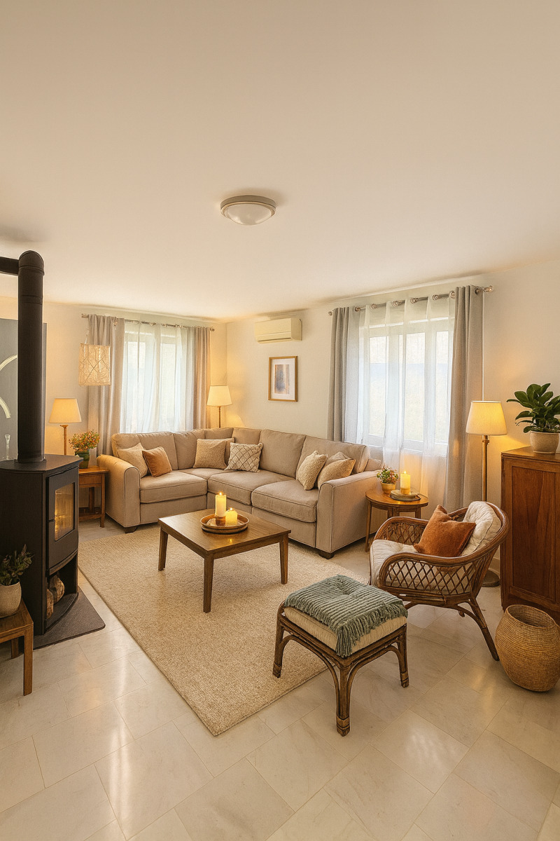 *Камини на дърва в дневните, които придават романтика и топлина на всяка вечер.