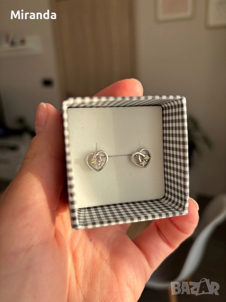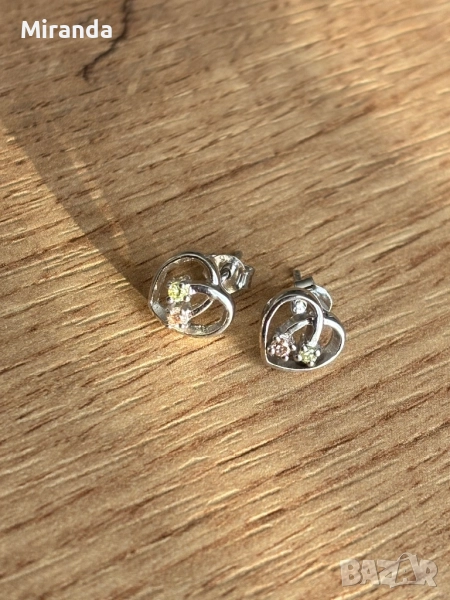 Сребърни Обици на винт сърца с камъчета → Обява 52152016