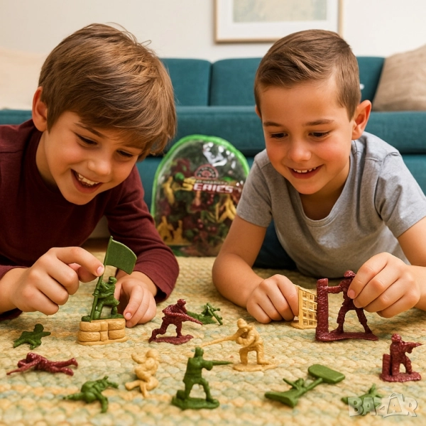 Комплект войници в раница Military Series Описание: Ако искаш детето ти да играе активно и креативно, комплектът Military Series – пластмасови войничета е идеален! Той насърчава въображението, стратегическото мислене и социалните умения чрез ролеви игри без екрани. Подходящ за у дома или навън, този класически сет забавлява и учи едновременно. Особености: Разнообразни войничета в различни пози и цветове. Развива логика, концентрация и въображение. Удобна прозрачна раница за съхранение. Безопасна пластмаса, подходяща за 3+ години.