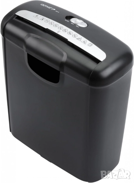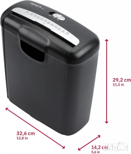 Шредерът ви позволява да нарежете до 6 листа хартия на ленти с ширина 7 мм едновременно. Мощният шредер лесно раздробява кредитни и пластмасови карти. Благодарение на функцията старт/стоп, може да се управлява и с една ръка. Главният превключвател на шредера ви позволява да избирате между режими Автоматичен, Изключен и Обратен. Контейнерът за събиране на шредера има изключително голям капацитет от 10 литра хартия и отвор, за да се вижда нивото на пълнене по всяко време. Тип рязане: Рязане на ленти; Капацитет: 10 литра; Цвят: Черен; Стандартен капацитет на листове: 6; Източник на захранване: Електрически с кабел; Размери на продукта: 29,2 Д x 32,6 Ш x 14,2 В сантиметра; Вид материал: Пластмаса метал; Гаранция: 12 месеца.