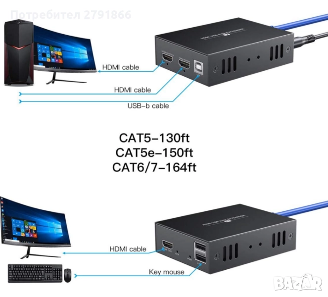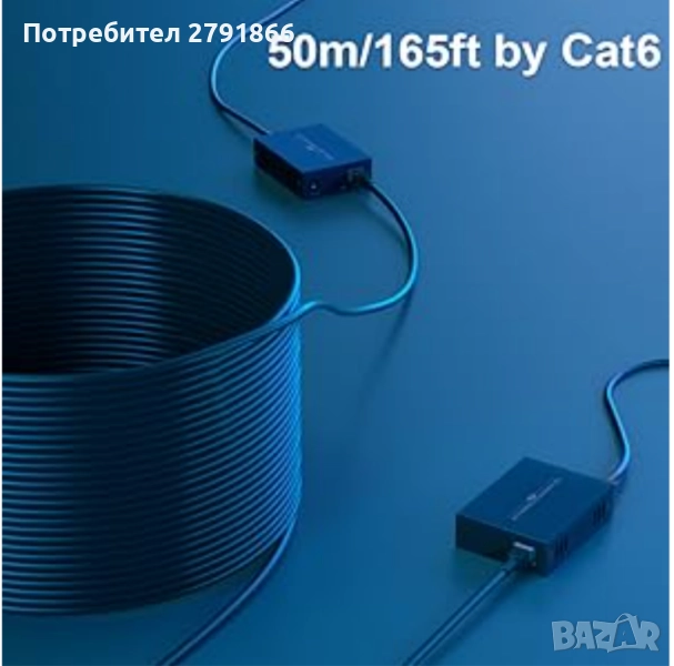- HDMI ПРЕЗ ETHERNET: Предаване до 50 м/164 фута с кабел Cat6/7, 40 м/130 фута с кабел Cat5e. За по-добро качество на звука и видеото и по-голямо разстояние на предаване, препоръчваме Cat6 или Cat7.